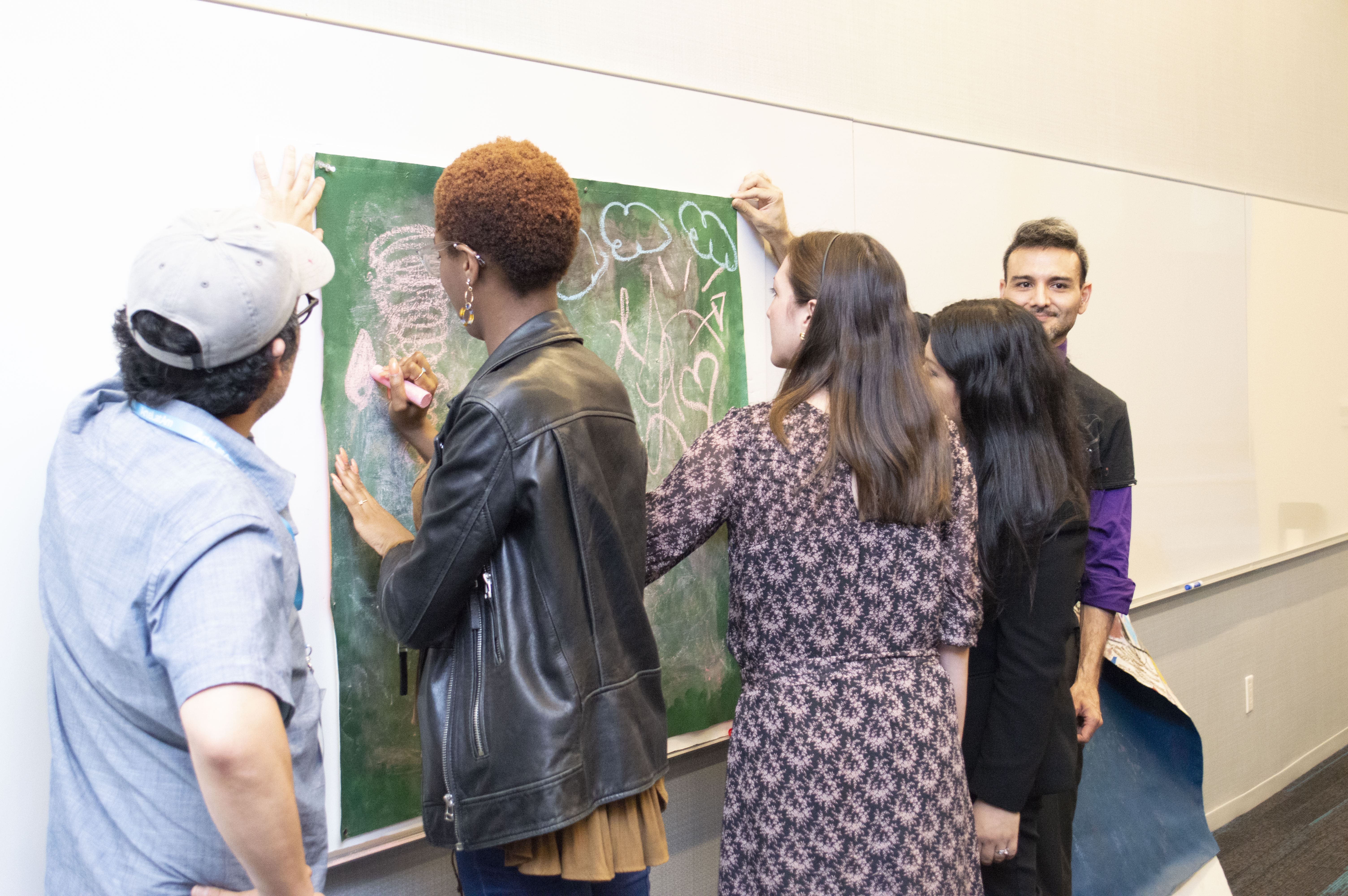A professional team of muralists will create an art mural. Engage students in art workshops as well as the development of an art mural. Students will learn art while actively painting a mural that will reflect the school values or a specific subject suggested by the school. In collaboration with artists, students will respond to their environment & social movements, expressing their observations, critiques, and hopes for the future.