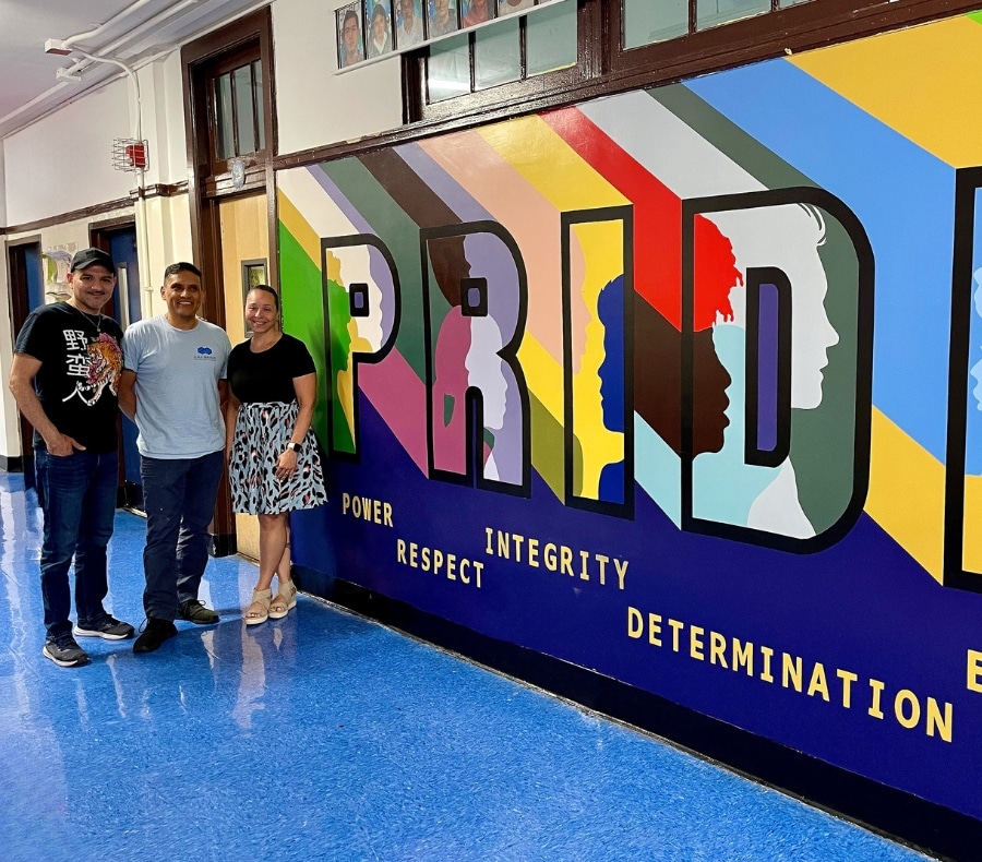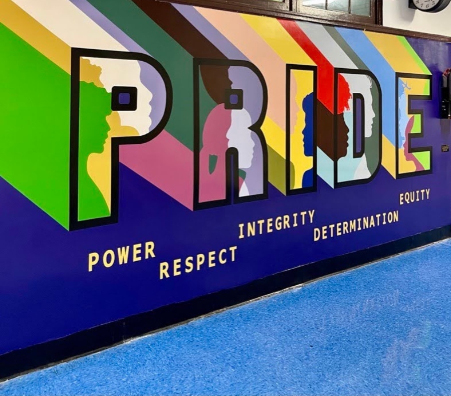 Info about the project: A team of two professional muralists created an art mural titled “PRIDE.” In consultation with school staff and students, our artists developed a colorful, unique concept based on Pride and Inclusion. The next steps involved prepping the walls, drawing, and painting the indoor mural to completion. We use high-quality art materials that ensure the longevity of the mural.