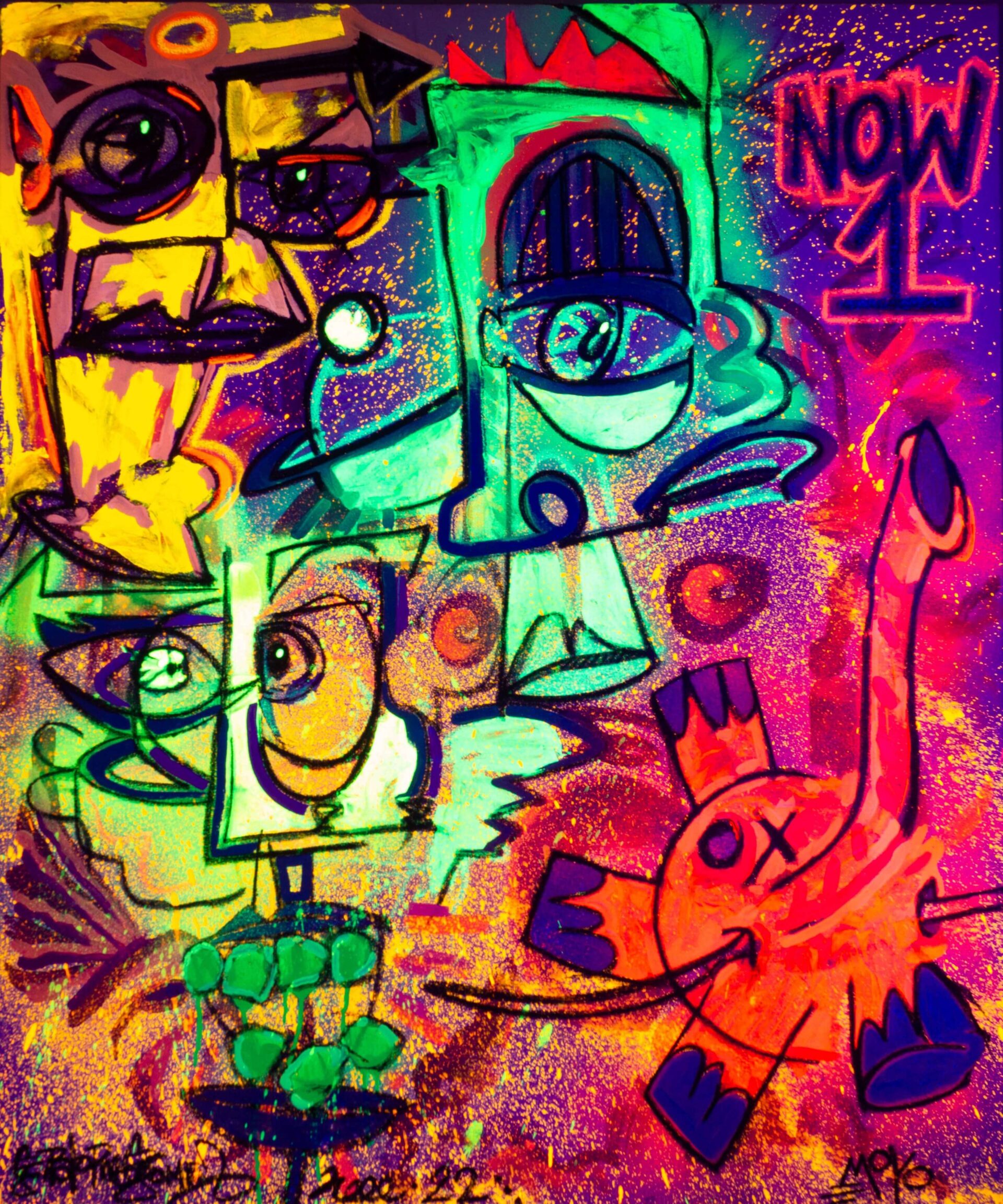 Technique: Vinyl, acrylic, spray paint, charcoal and oleum on canvas</span